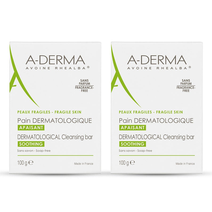 A-Derma Rhealba Oats Oat Milk Dermatological Bar for Irritated Skin 100g (3.52 oz) – Pack of 2